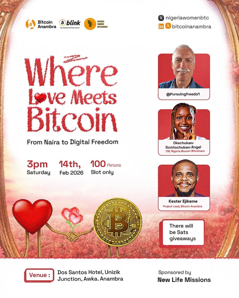 In a remarkable blend of romance and financial empowerment, Bitcoin Anambra, in collaboration with Nigeria Women Bitcoiners and sponsored by Blink, is preparing to host a unique Valentine’s Day event titled “Where Love Meets Bitcoin: From Naira to Digital Freedom.” Scheduled for February 14, 2026, the event aims to educate attendees about Bitcoin in an engaging and accessible way, while also celebrating the spirit of love and community.