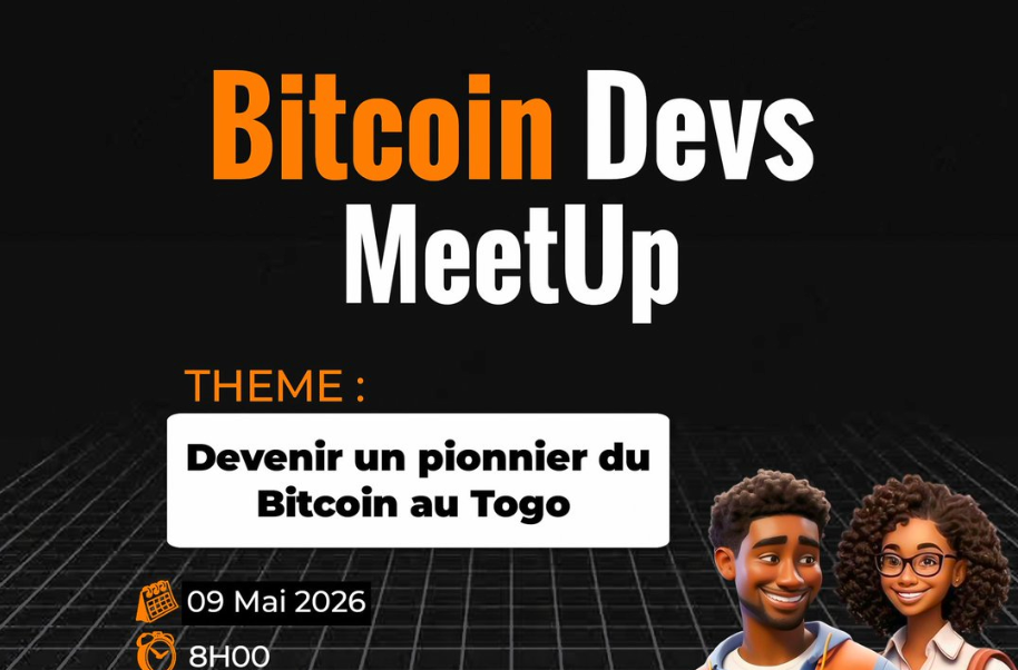 La scène Bitcoin francophone continue de se structurer en Afrique de l’Ouest. Le 9 mai 2026, la Togo Bitcoin Community organise son tout premier Bitcoin Devs MeetUp, un rendez-vous pensé pour celles et ceux qui veulent passer d’une compréhension “utilisateur” à une compréhension plus technique de Bitcoin.